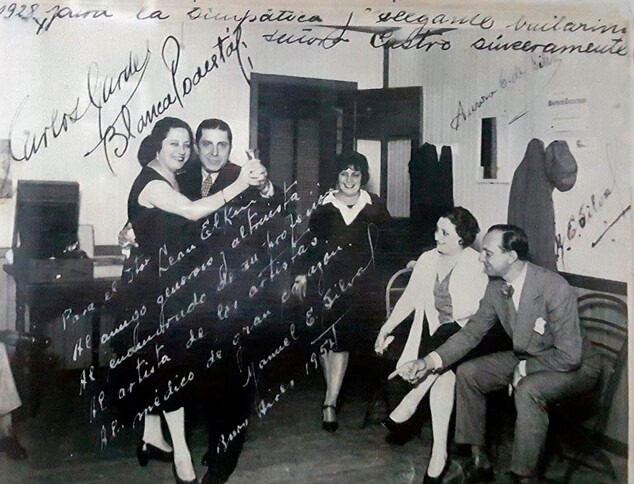 Buenos Aires 1954”. La fotografía está firmada por Carlos Gardel, Blanca Podestá, Aurora C. de Silva y M, E. Silva.