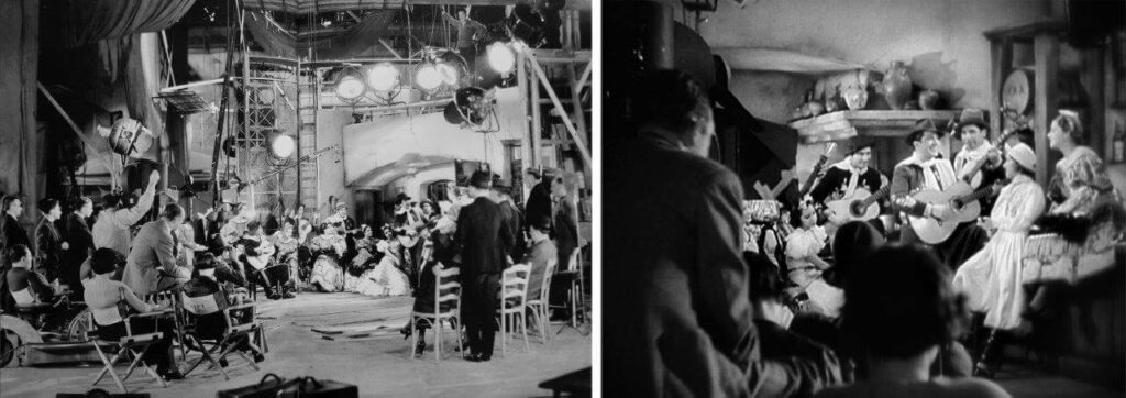 Filmación de la escena de la boda de Julio Argüelles y Margarita (Carlos Gardel y Rosita Moreno).